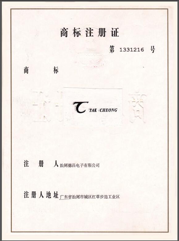 是汕尾德昌電子有限公司在中國的注冊商標之一,受法律保護,侵權必究。